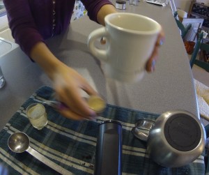 Step A: Locate new birthday cup (thanks Lindsay) and add caffeine. Lots of caffeine.