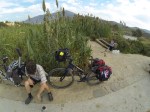 Just past the Arabic influenced town of Calatafimi, we’ll decide pavement is so five minutes ago and trade it for dirt: accidental mountain biking part two! It’s a true interior Sicily experience — barking dogs (luckily too far away watching sheep or keeping their flabbergasted owners company as they pick olives), steep cultivated hillsides and steep, rutted 4-wheel drive roads. Eventually, we’ll reach a remarkably well signed intersection and pavement, which will be so glorious that we’ll think we’ve died, gone to heaven, found touring bikes (and mosquitos — there are mosquitos in heaven?) and gone for a sweaty Sunday cruise.