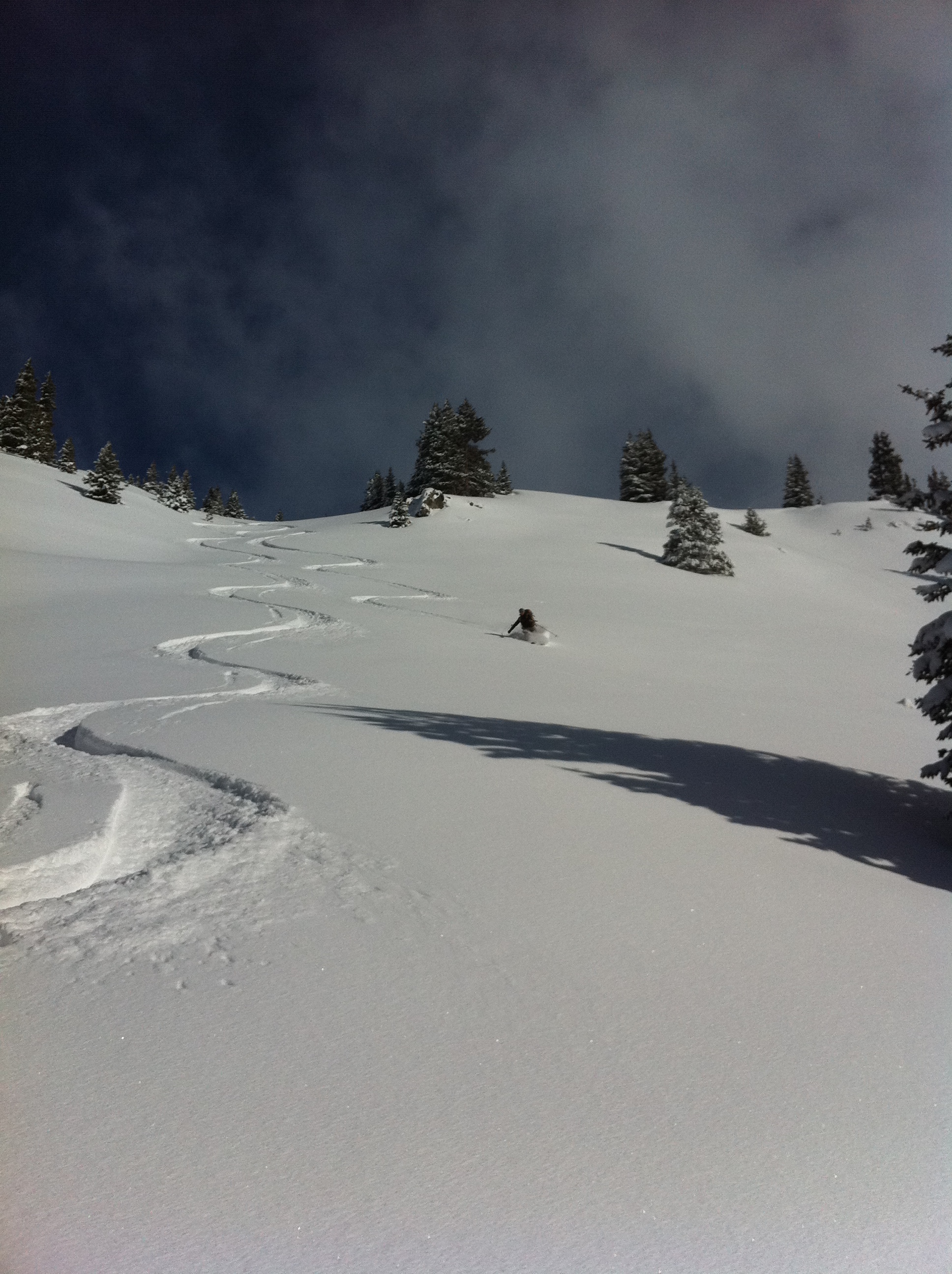 And for the last three days, Tyler and I have been doing the proverbial crack snort with great joy. Inclement weather? Whatever. At the top two days ago, the winds were so strong a nearby tree felt inclined to smack me in the face with a snowball at close range. On the way up, we saw a small-ish avalanche other skiers had sympathetically triggered (meaning, they set it off from some distance away) the day before. Yesterday, once we de-skinned and began our descent, the visibility was so bad it was like skiing on the moon. We drove an hour from our house to just outside of Copper on Sunday, avoiding the backed up, barely contained fray that was I-70 just to hike our sorry butts up a mountain… and have some of the fluffiest, butteriest turns yet this season.