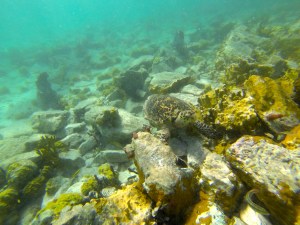 Watching an endangered hawksbill turtle eating the crap out of some fire coral (which, by the way, is painful to human skin but apparently not turtle’s mouths).