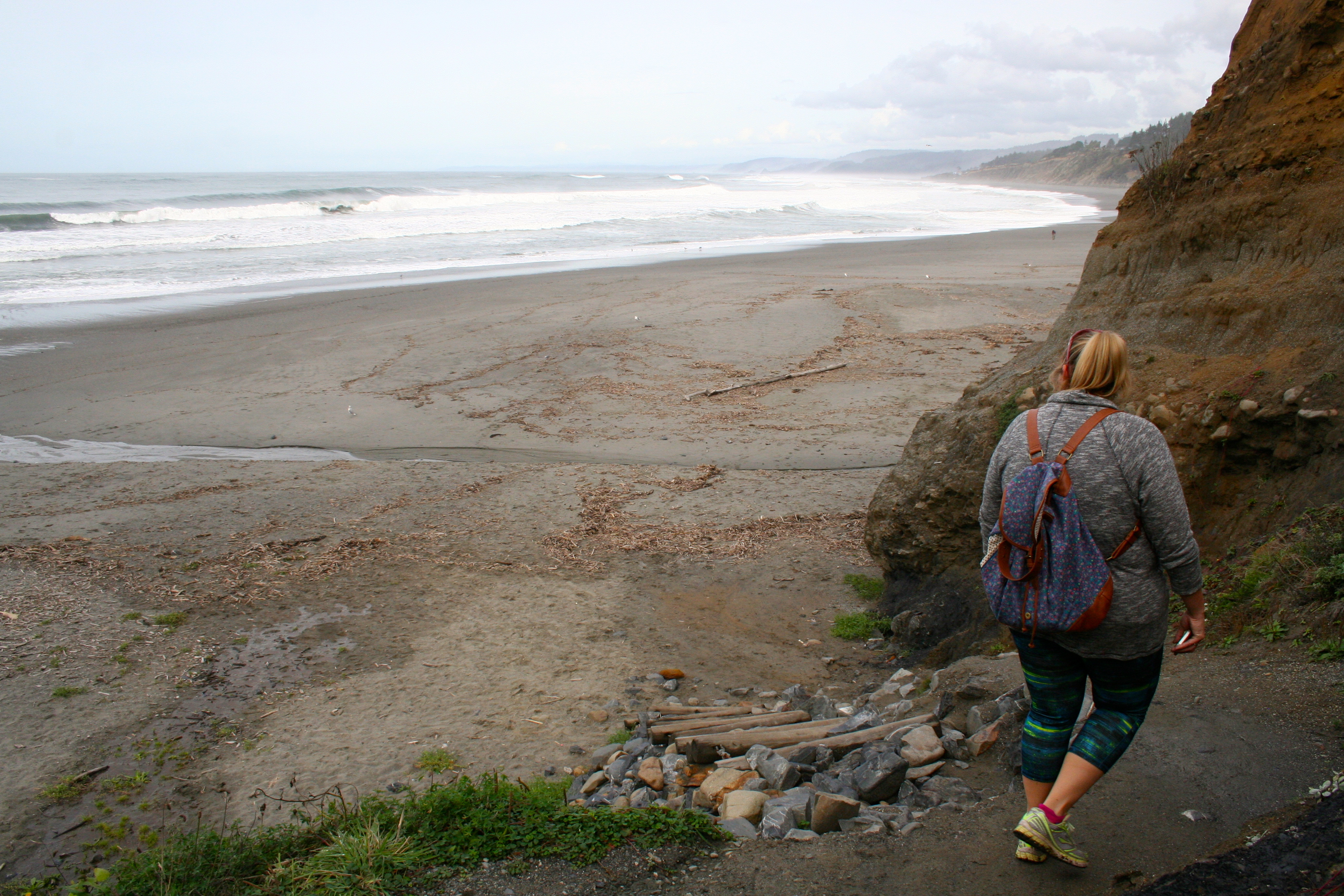 Hiking down to Agate Beach while the boys mountain bike in the Redwoods.