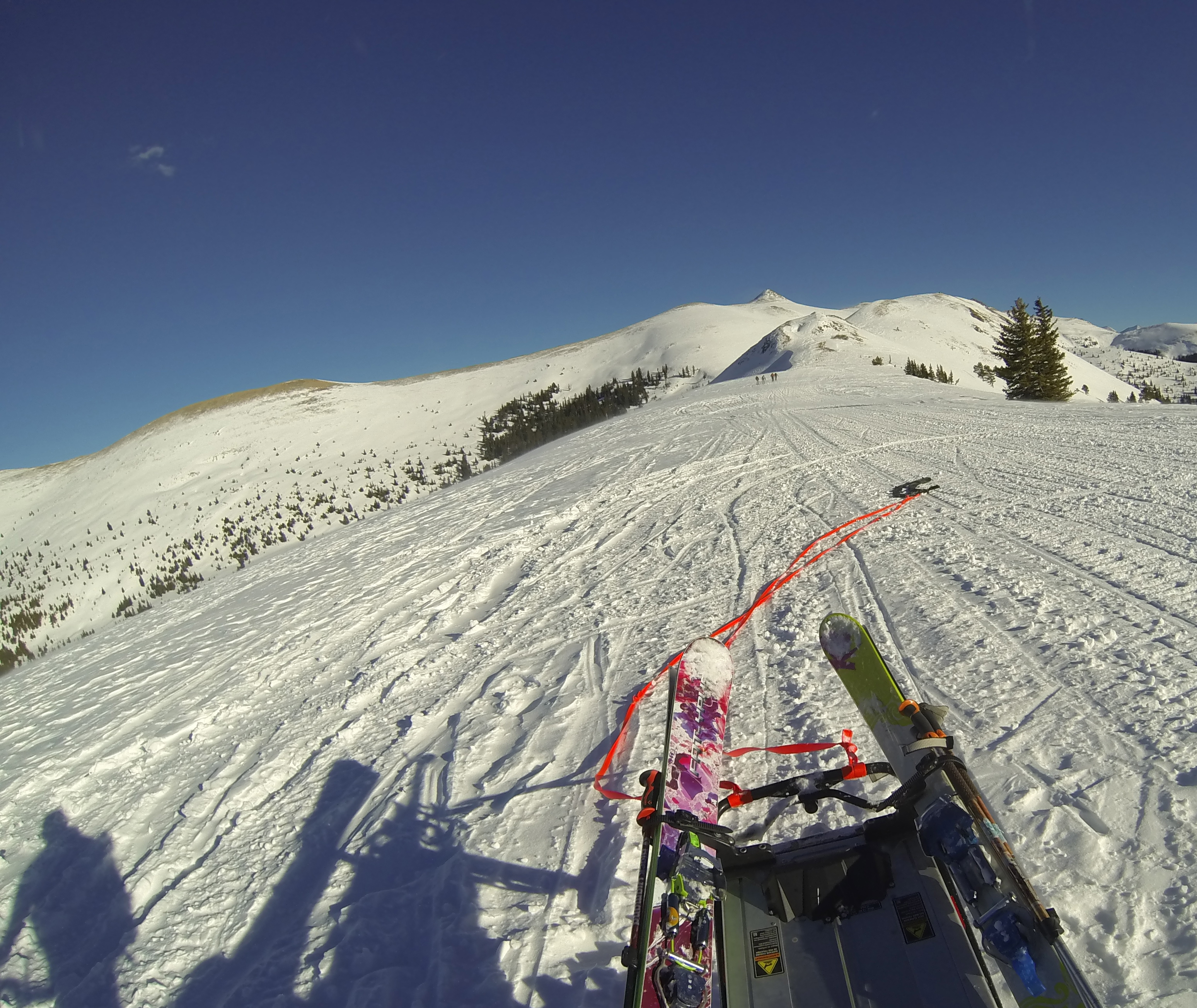 After a lap through Boss Basin, the girls tow and the boys ski.