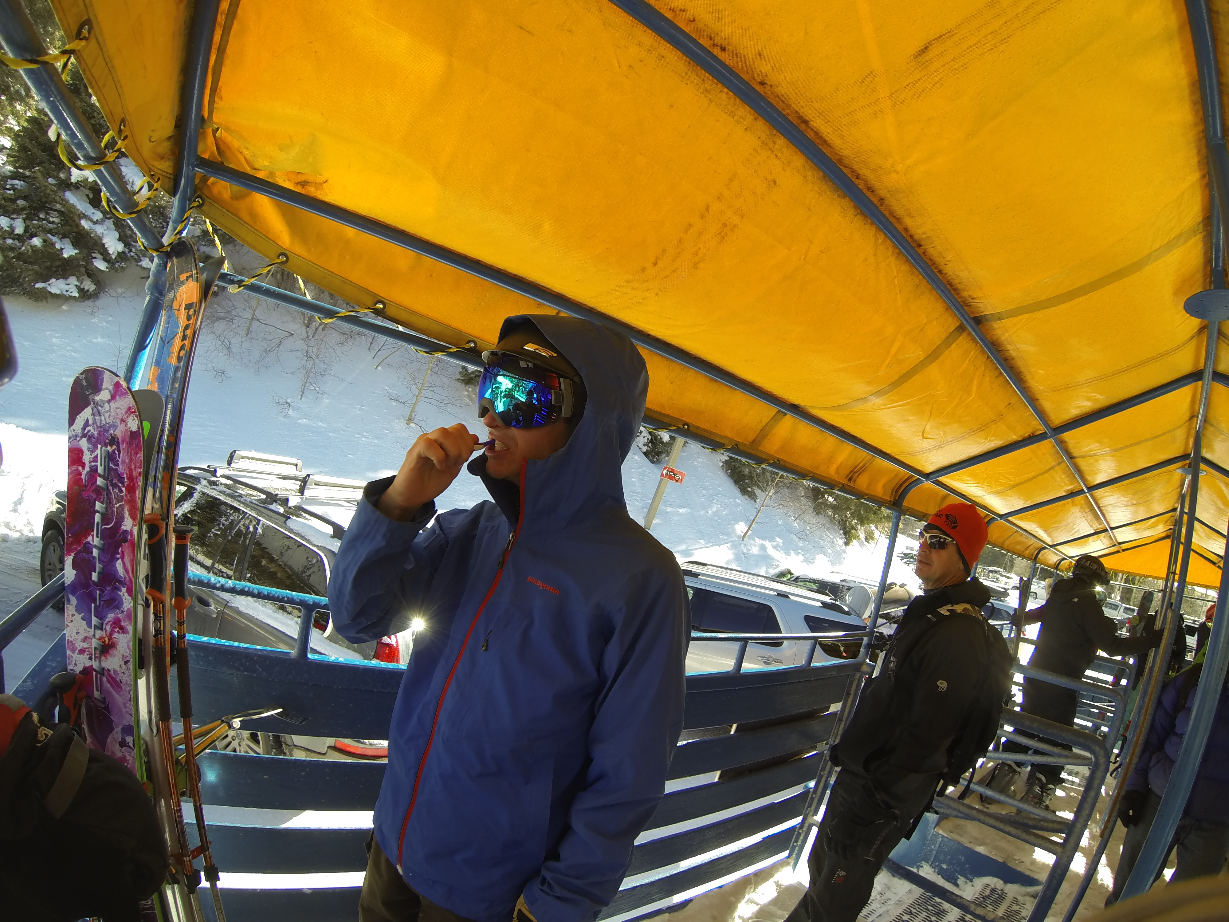 Eventually, it became evident — as all the clouds wandered away, bored — that Kachina Peak would remain closed. However, Tyler and I happened to be at the Chair 4 lift (which runs underneath one of the main faces of Kachina) shortly before it opened. Again, we managed to be in the first dozen heading up. The ride allowed a bird’s eye view of a massive slide that ran “T to B” (top to bottom) and in some places all the way to the ground just above Chair 4. After a brief stint skating across the debris like Alice in Chunderland, we got a few more glory turns in before everyone else showed up, too and we called it a day.