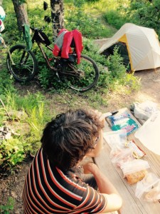 After another climb and then unexpected short mountain bike ride from the parking lot to camp, we set ourselves up real nice. At Reynold’s Campground — which is FREE, btw — we had to filter creek water but there was more free firewood than you could shake a burning stick at.