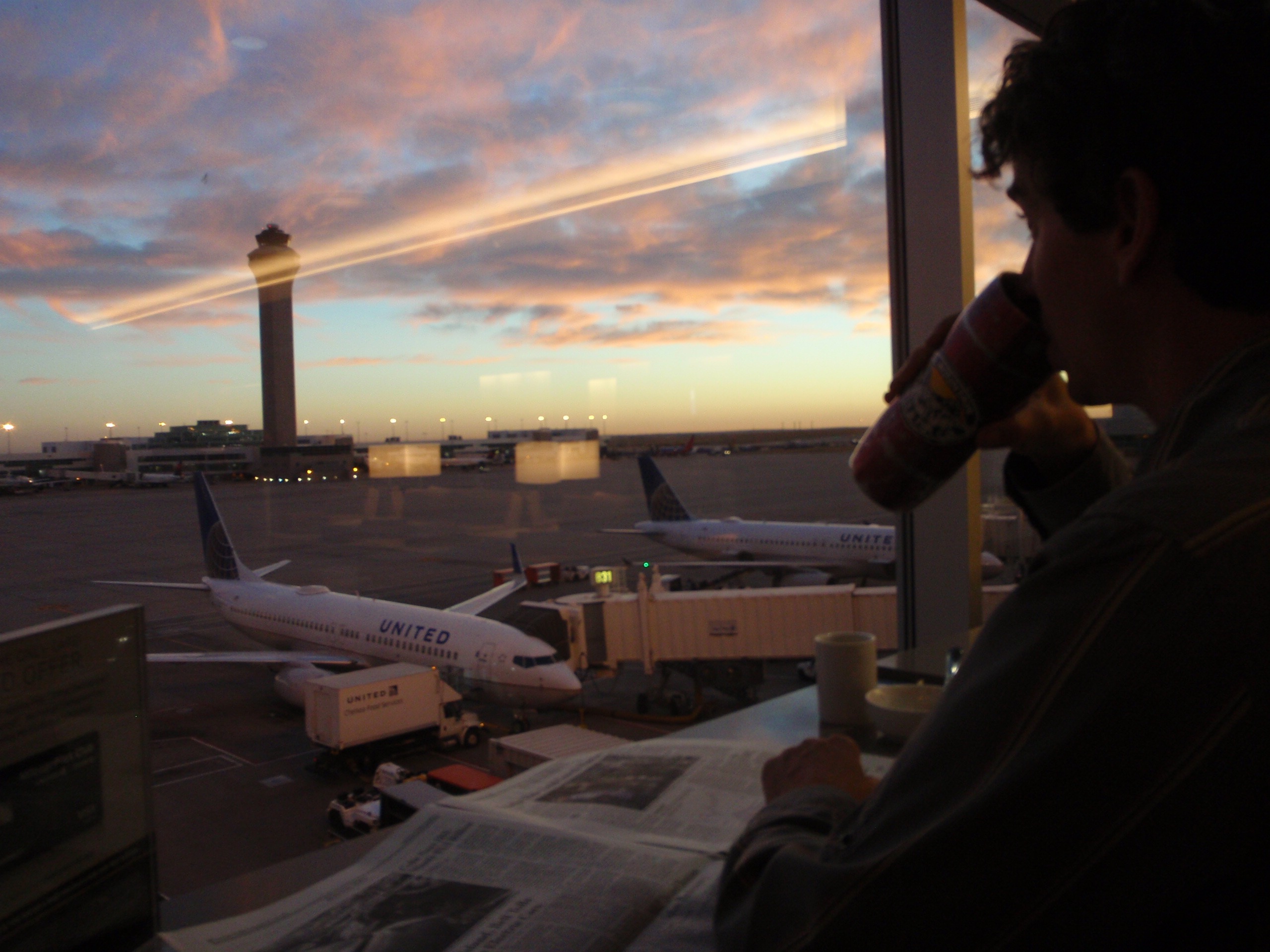 A beautiful sunrise from the United Lounge, which I almost missed repeatedly trying to fall asleep sitting up.