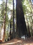 A picture perfect moment in the morning, with my bike looking ant-sized next to this arboreal giant. Did you know — by the way — a Redwood cone is the size of an olive?