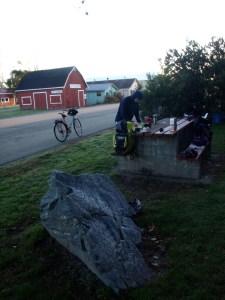 Our choice campsite behind the grandstands at the Humbolt County Fairgrounds! For 10 bucks, it’s a screaming deal and we have the place to ourselves.