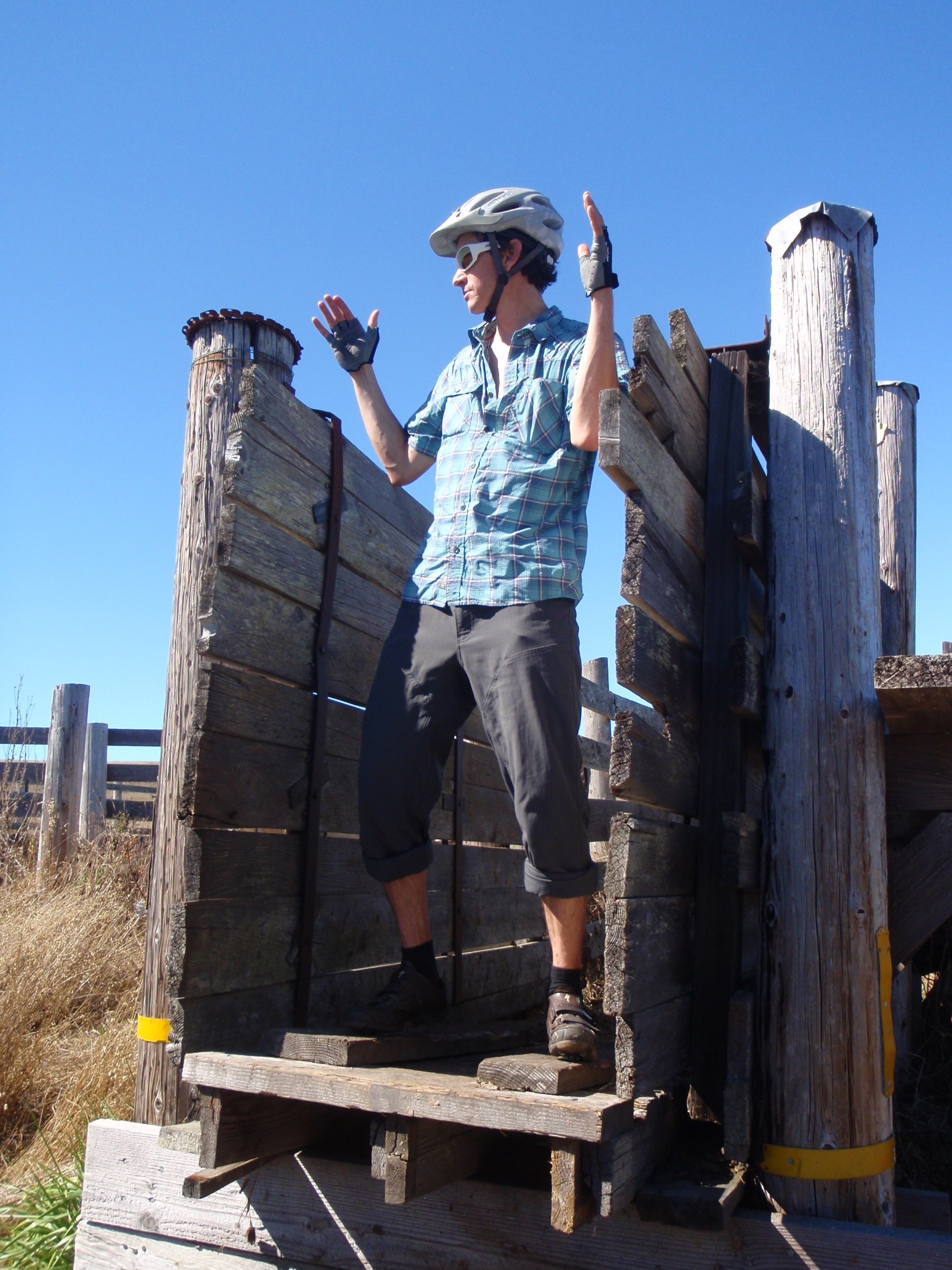 Tyler waiting for me to catch up while gettin’ down in a cattle chute.