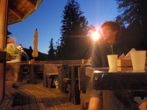 We rode three miles round trip to the Chimney Tree restaurant for dinner. Its namesake, the hollowed out Chimney Tree (burned out in the early 1900s) is free to walk in and makes you feel like a hobbit.