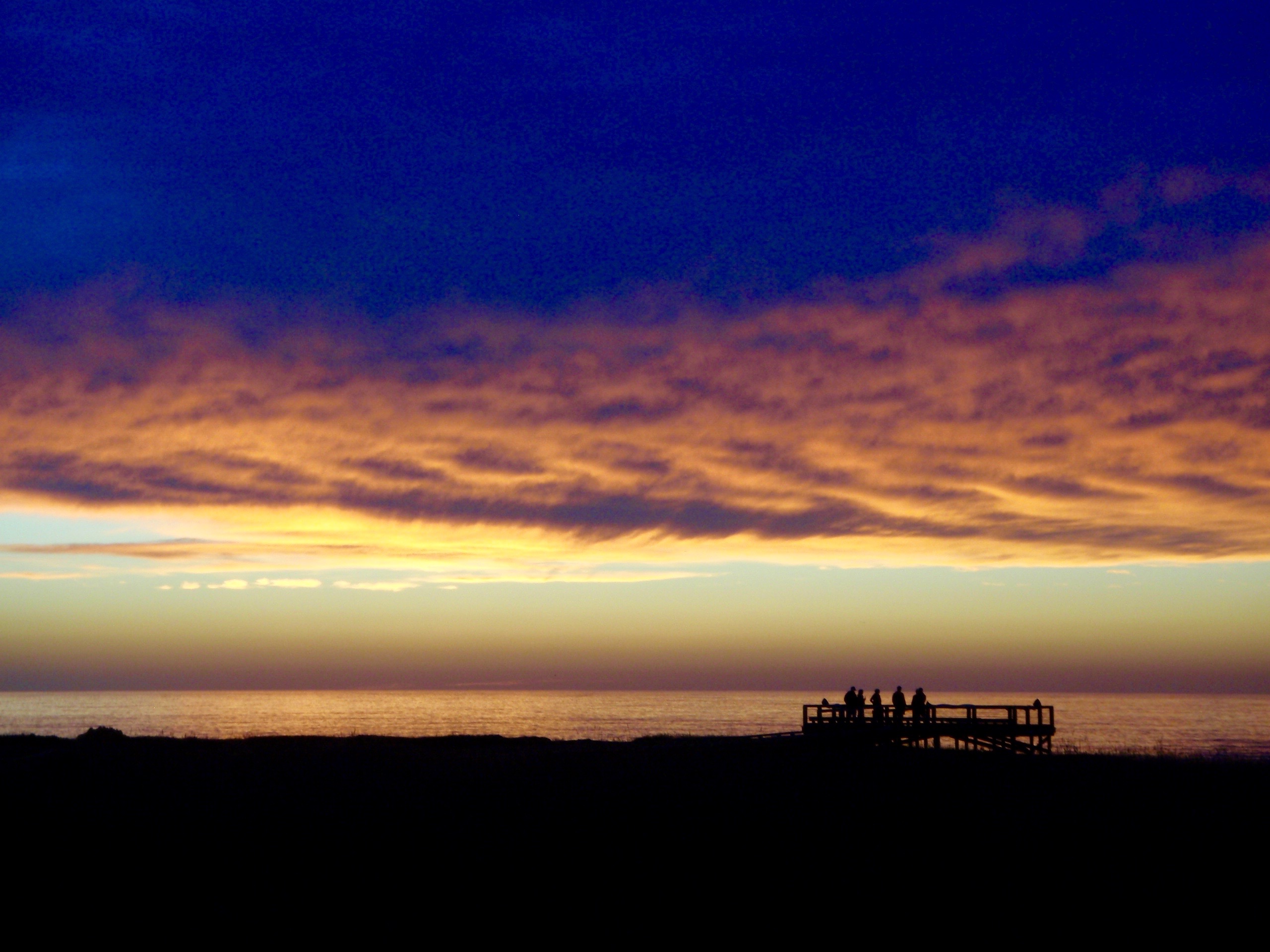 Sunset’s pinnacle, over the silhouettes of strangers at the whale-watching platform also absorbing the view.