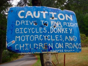 The sweet sign at Four Corners, where four roads — including a 21-mile “shortcut” to Highway 101 and our route, the Usal Road — began.