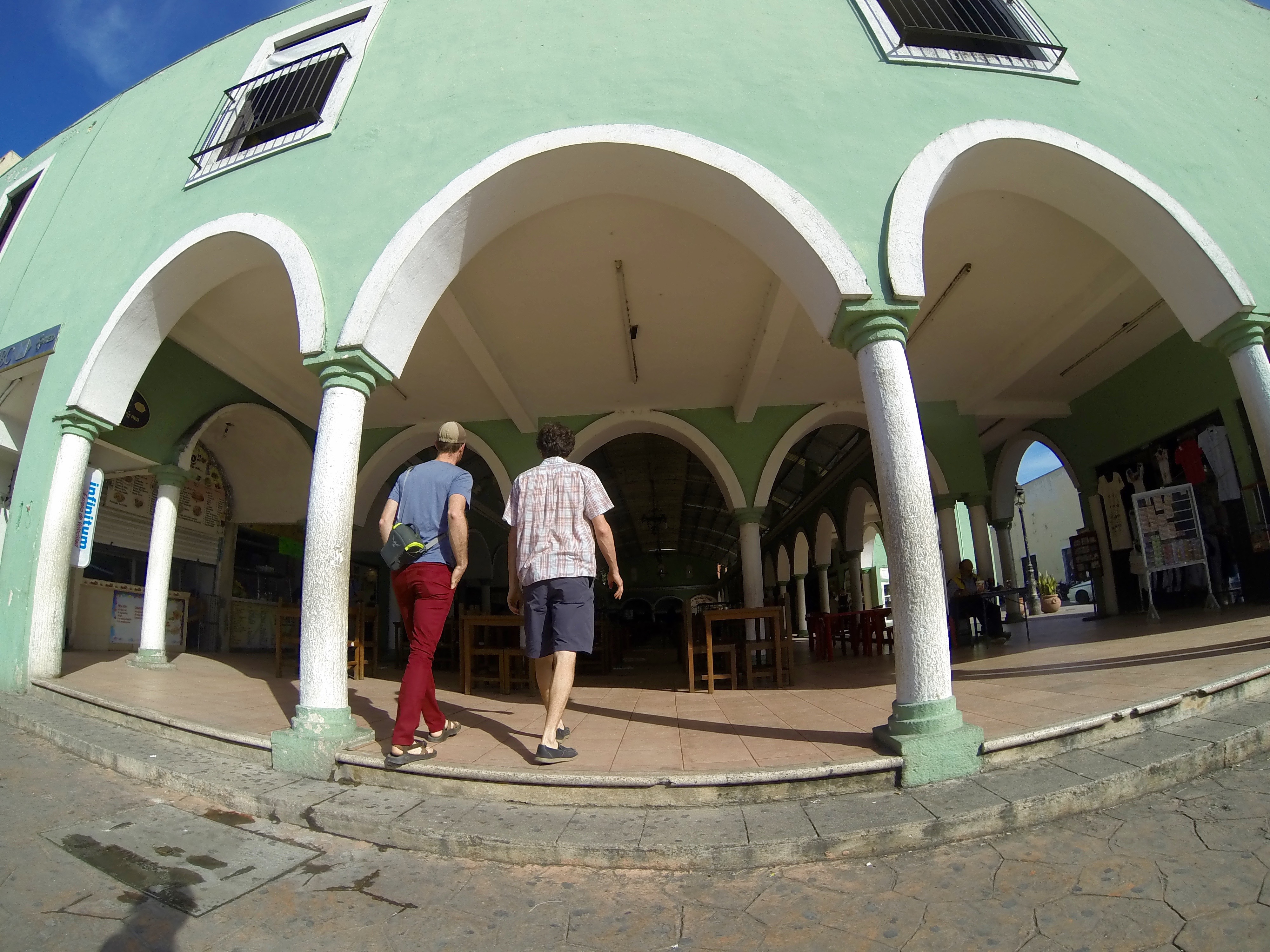 The boys heading into breakfast in the market, right across from the main plaza.