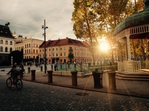 Golden fall light near Ljubljana’s campus.