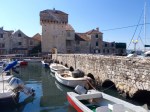 Nonetheless, vacation, sunshine and the open road beckoned. We took to busy streets out of Trogir and then onto a paved path that ambled with the seaside like lovers holding hands. A flat, scenic vista greeted us, along with a constant string of little towns with ocean views and narrow streets. Also, diminutive kastels (castles) flanked by bobbing boats and numerous pekaras (bakeries) inside which to find another loaf of fresh, chewy bread for the upcoming ferry ride.