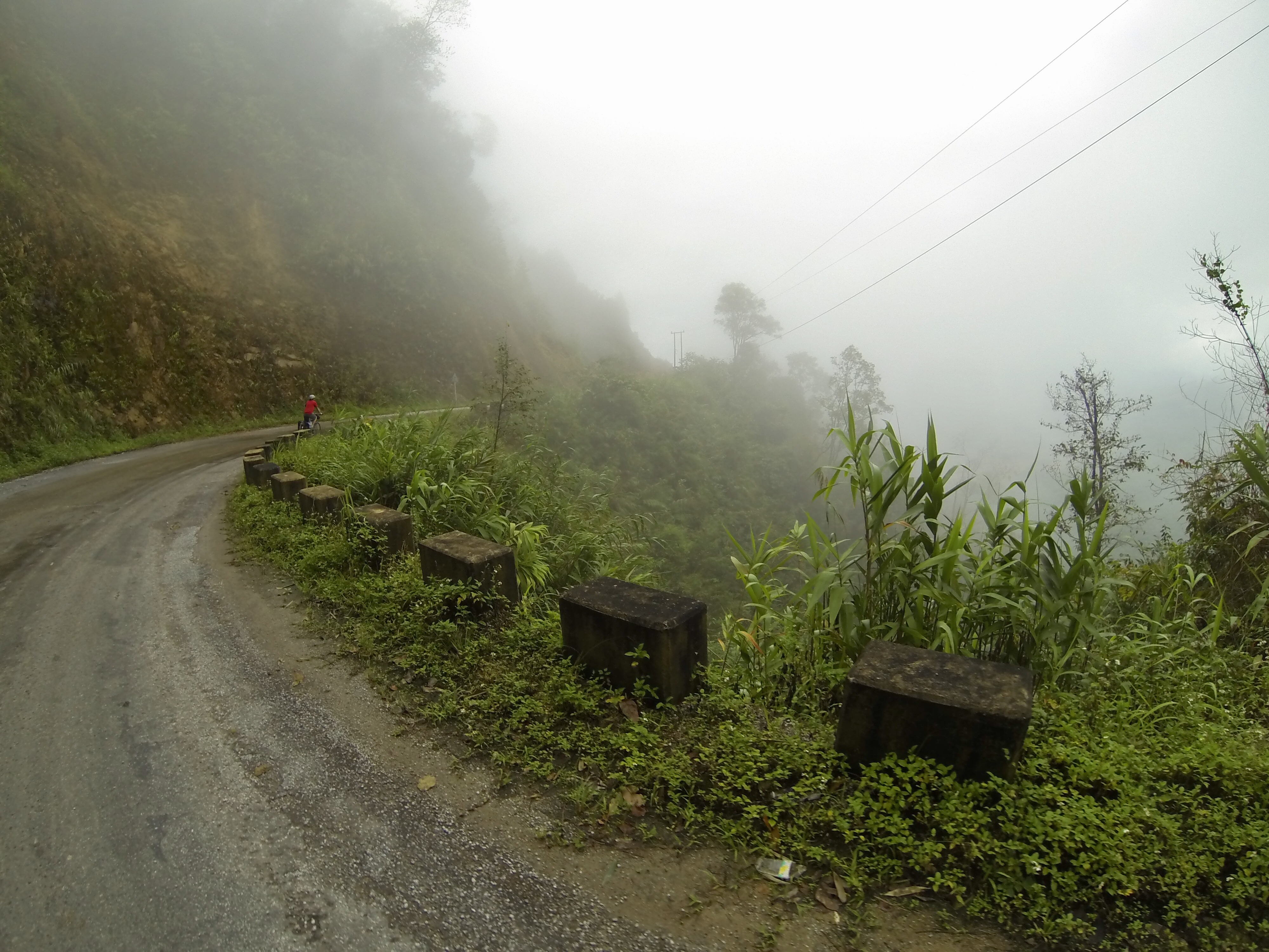 Riding through the mist to the Laos border checkpoint.