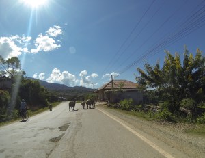 Taking the water buffalo on a walk.