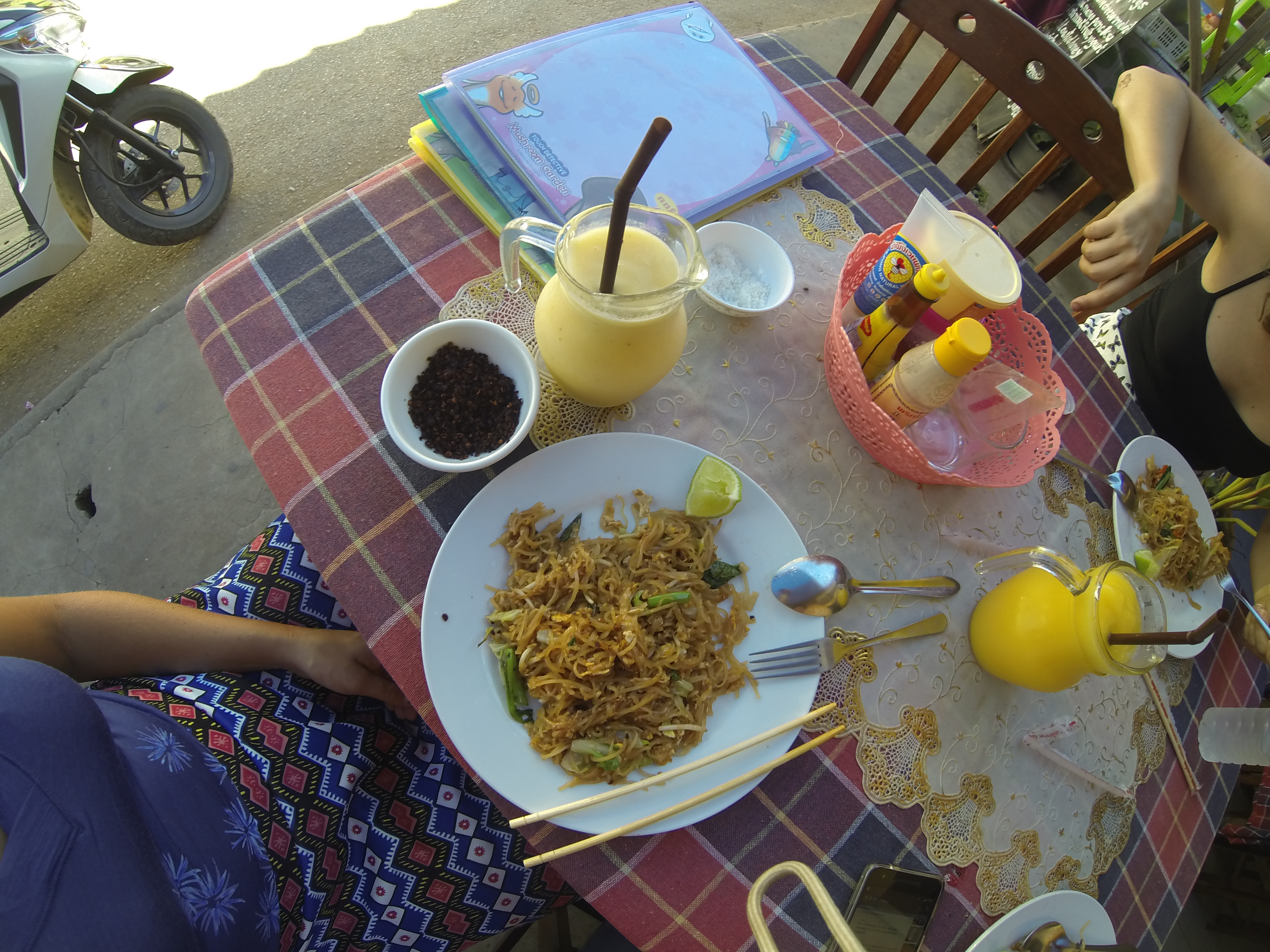Fried noodles and mango smoothies for lunch!