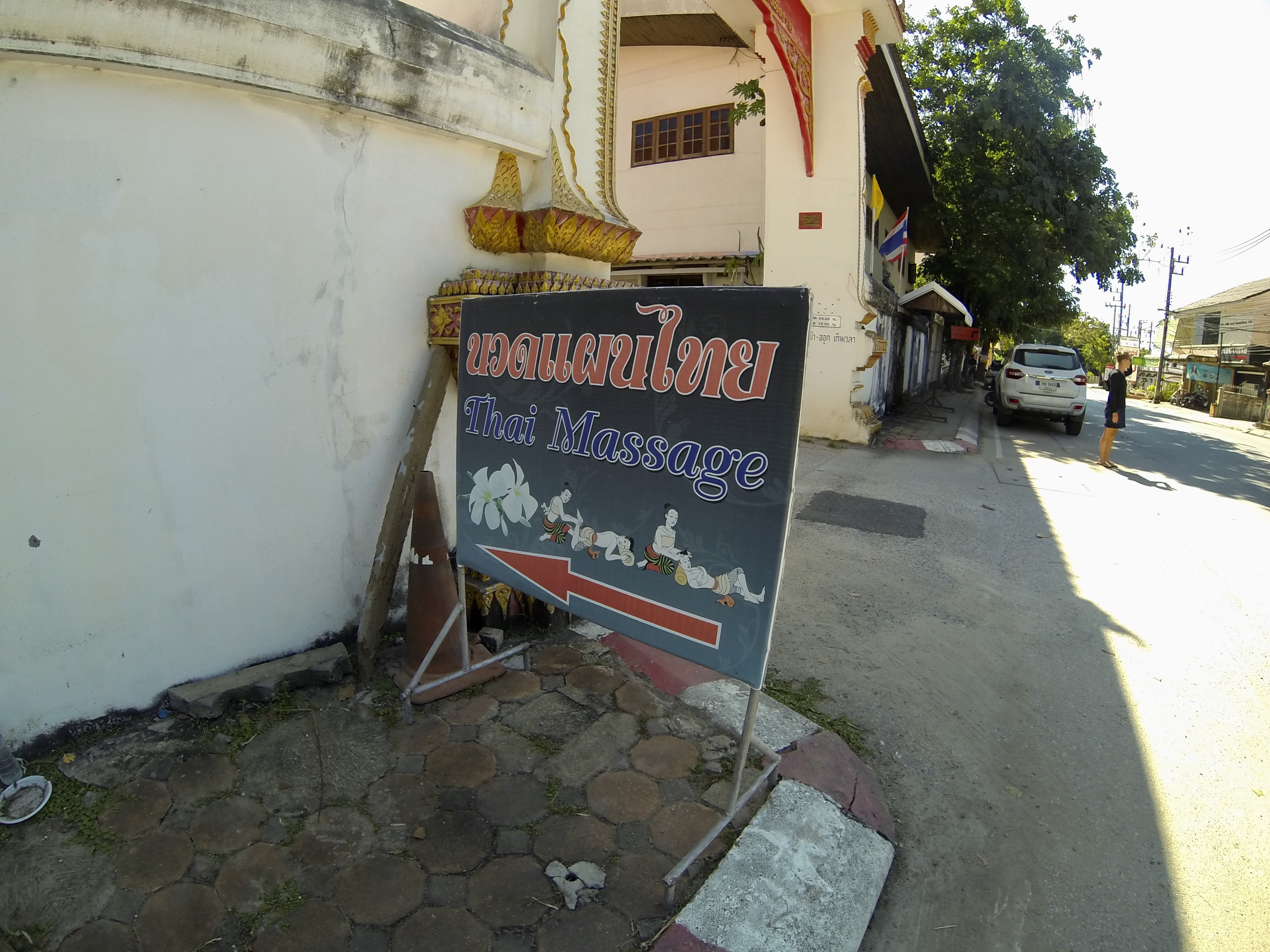 A really awesome hour-long Thai massage for 140 baht (about $3)? Next to a red temple? Sign me up!