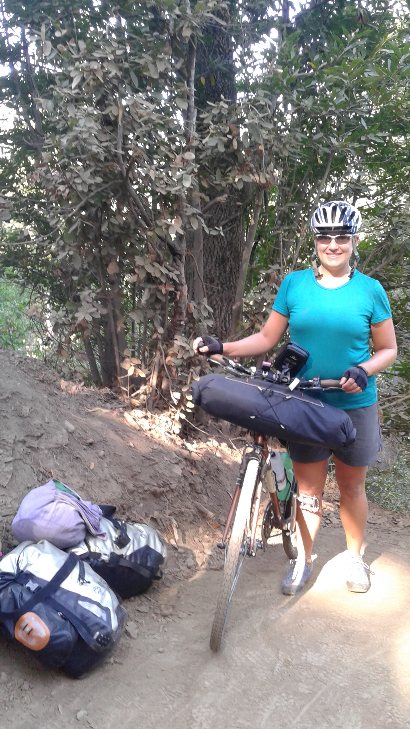 Schlepping bike and gear up the dirt trail the locals used just south of Pfeiffer Big Sur State Park, California.