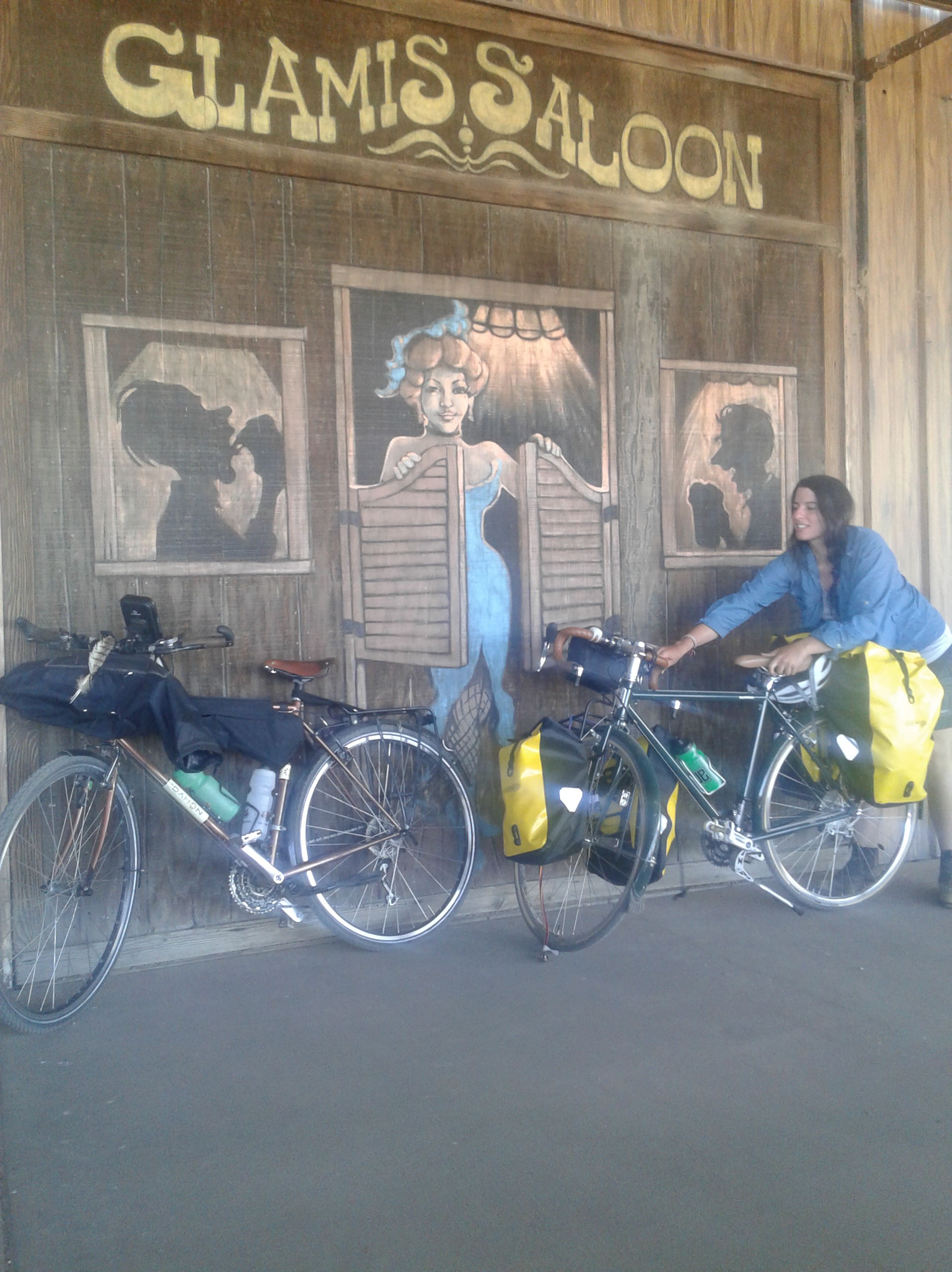 A glorious new friendship with Katherine and her bike, Jonie in Glamis, California.