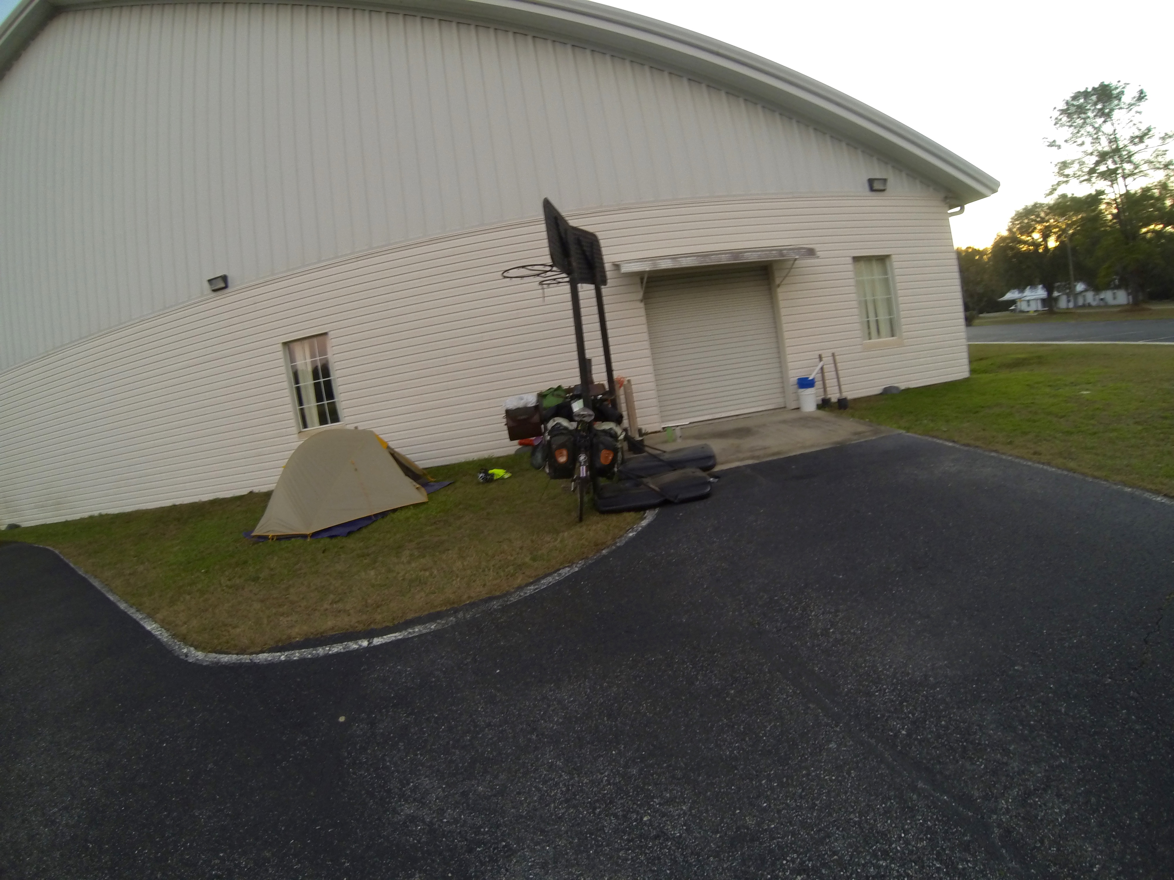 Camping behind a church in Wellborn, Florida (night of the sprinkler fight).