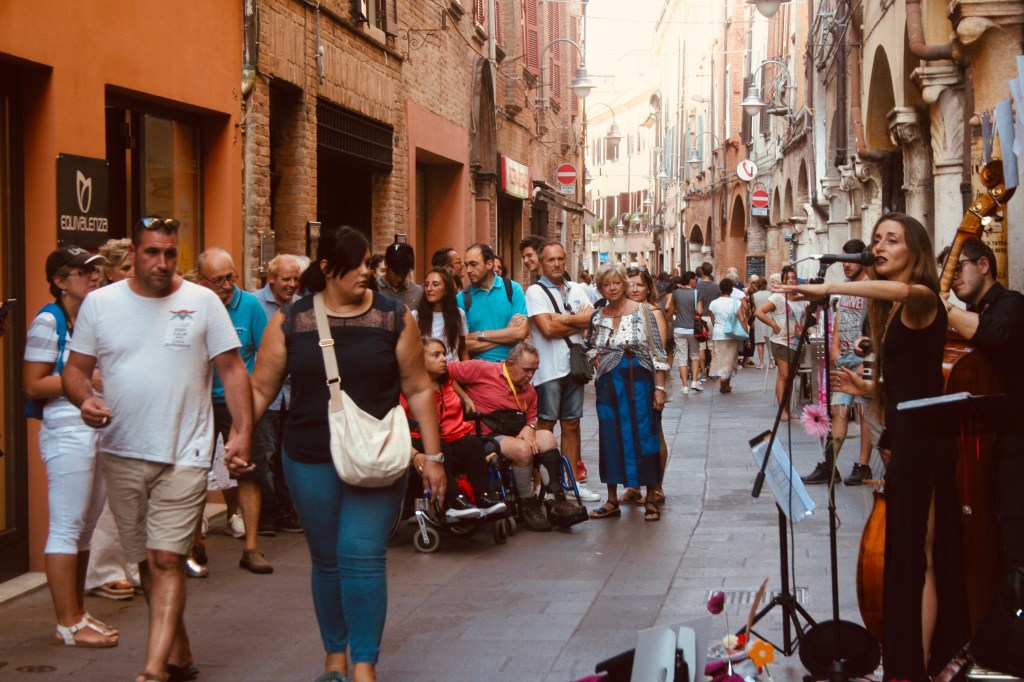 And so — with the power vested in me — I planned myself a romantic vacation to Ferrara to see its famous Busker Festival. “Ferrara offers a 200,000 square meter stage for a thousand artists coming from 35 different nations,” I read on the Emilia Romagna Tourism website. If I hadn’t been hooked already, I was then.