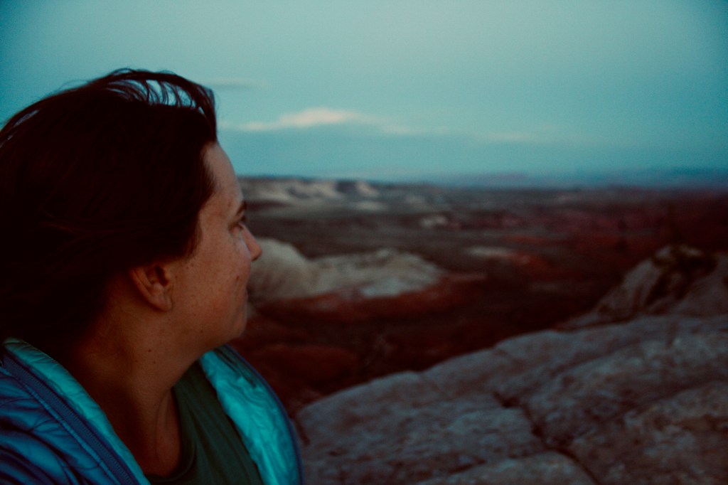 I walked off under a bluebird sky, nothing like the one here, which is as gray as a chameleon adapted to blend into cement walls. I had crossed through endless pinion-juniper trees on a dusty road that slanted just enough it couldn’t be considered flat. The path narrowed from car to horse width and eventually to whatever diameter requires a constant, careful dodging of prickly desert fauna. About then, a feeling of wildness soaked into my bones like rainwater into desert sand.