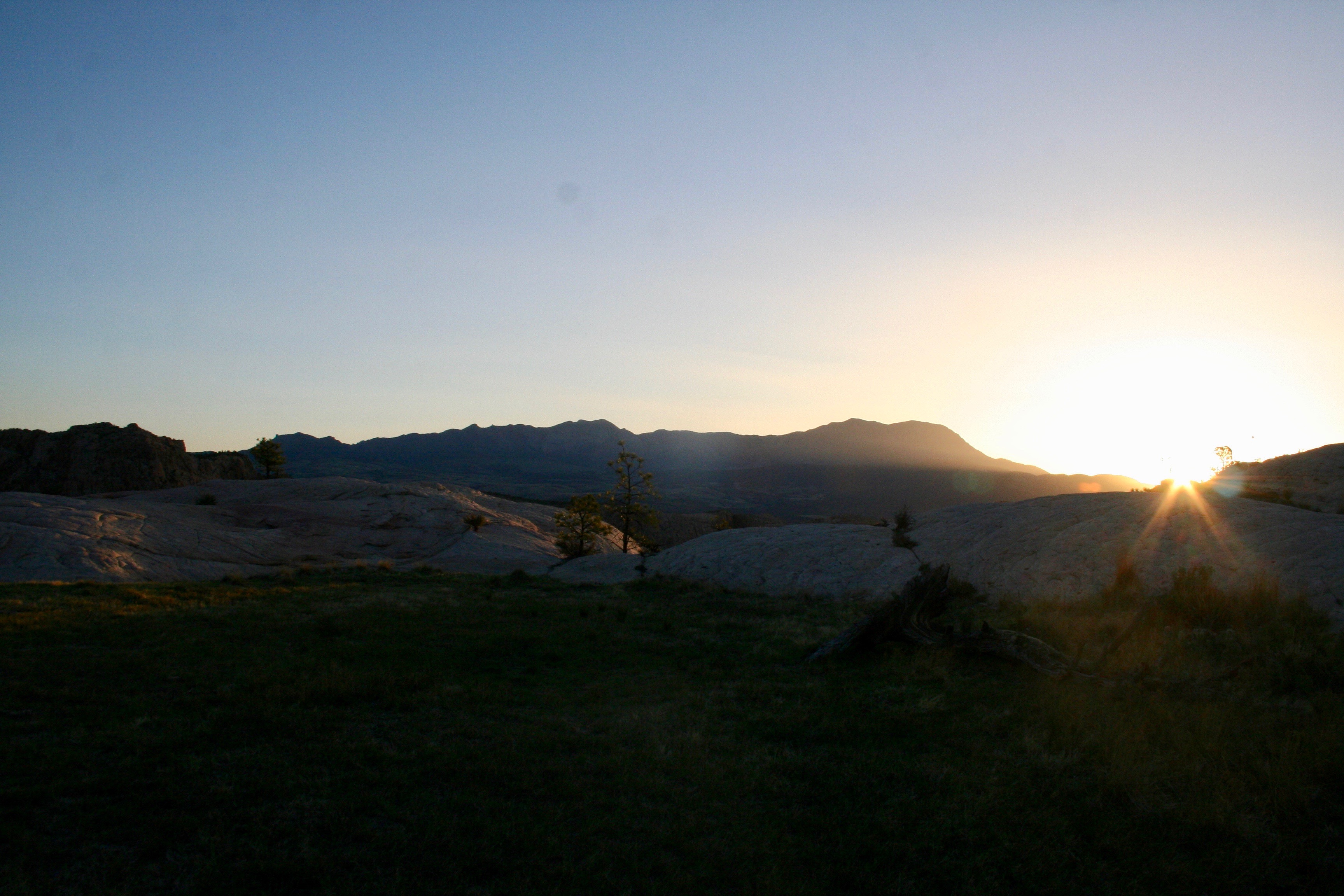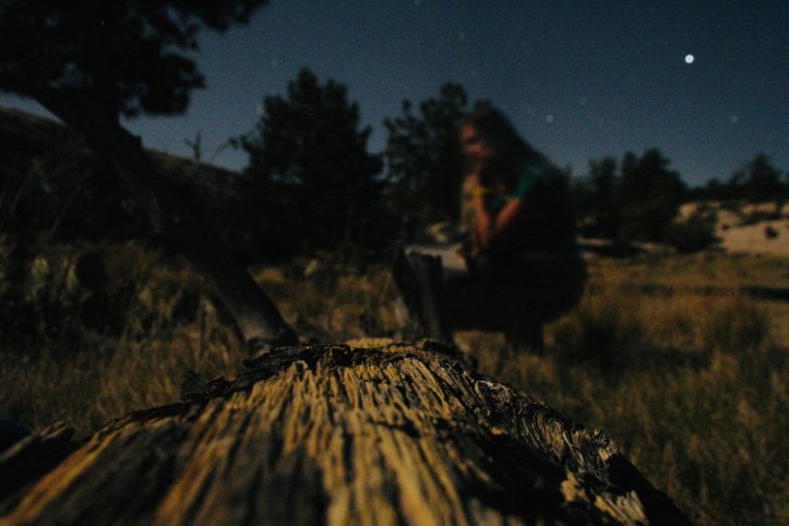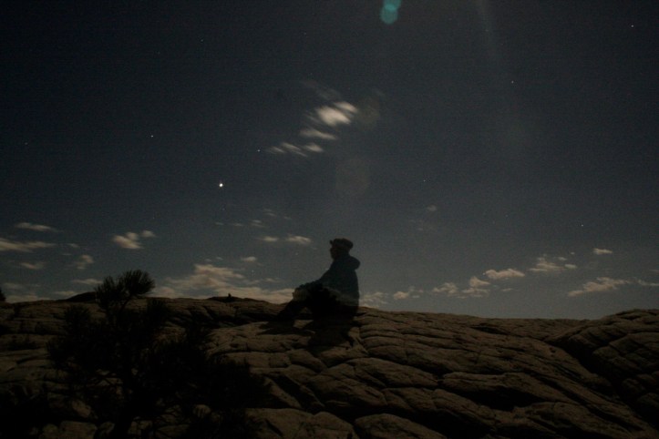 After dinner, the full moon was reflectiong off all the rock and casting eerie shadows everywhere. The white sandstone produced a similar effect to snow by amplifying the moon’s brightness. I had brought my old Canon Rebel XT camera, which had entered its geriatric years but was still functioning. I grabbed it to capture how the moonlight shone off my tent and peeked through the leaves of the juniper tree as if impersonating her blinding brother, the sun.