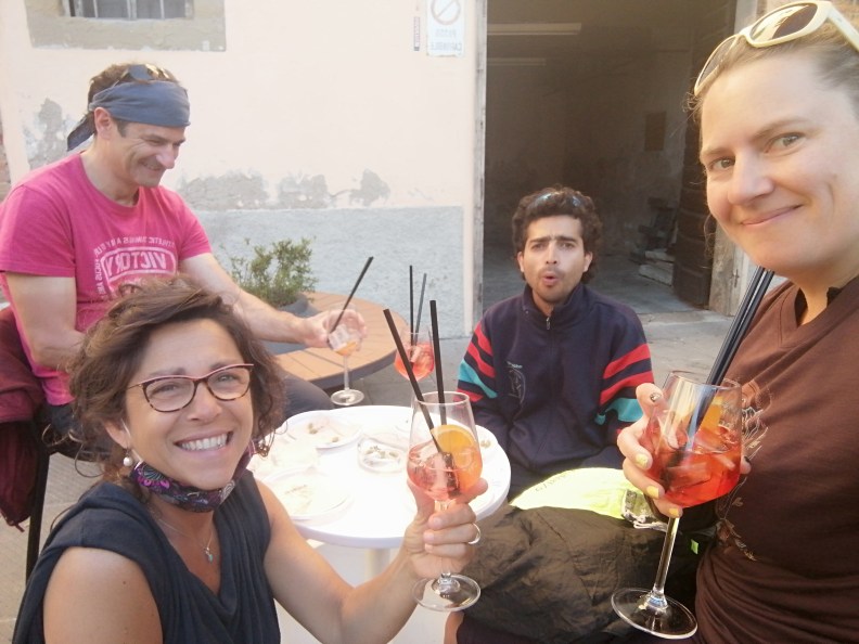 As we waited for the calming effects of nightfall, we piled into Gui’s car and backtracked to Cittá di Castello for aperitivo (like American happy hour). We wandered the cobbled streets with a happy buzz, enjoying the colorful medieval streets the town is famous for.