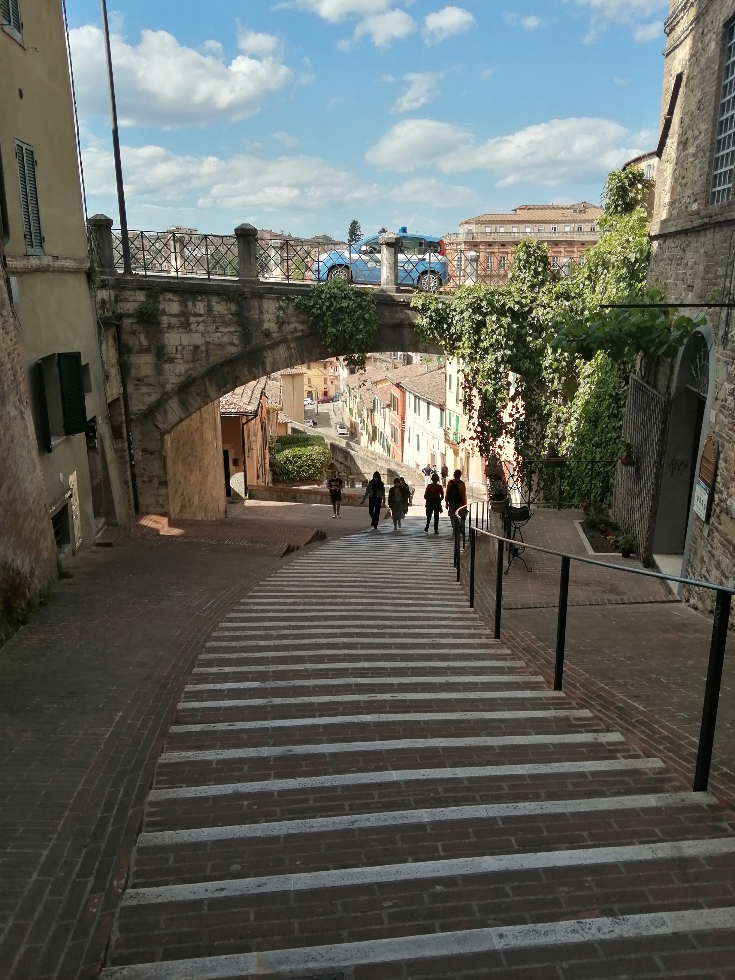 Perugia, like most classically medieval strongholds, was perched on a hilltop. Its main train station was located, again classically, but in the modern sense, in the flats underneath the town. At one point, a train did climb up to Perugia, but each person we asked told us something different: that it didn’t exist anymore, that it might, or that it never had.