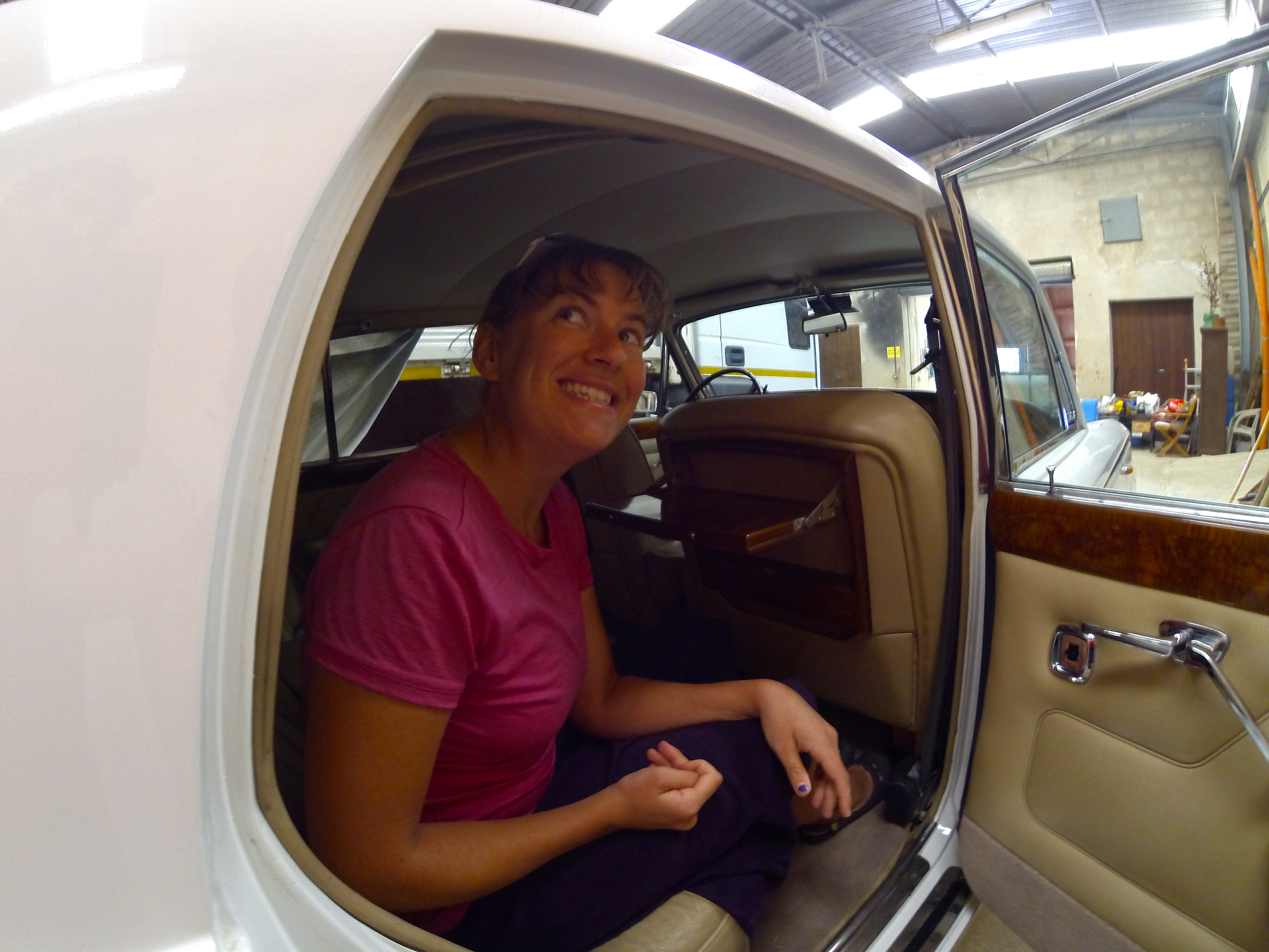 But we couldn’t leave without a tour of the owner’s vintage cars, which included this 60’s era Rolls Royce. Eugenio called me “Queen Elizabeth” as I (reluctantly) exited the pristine leather interior.
