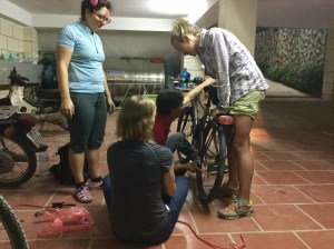 Working on Wanda, Lisa’s bike.